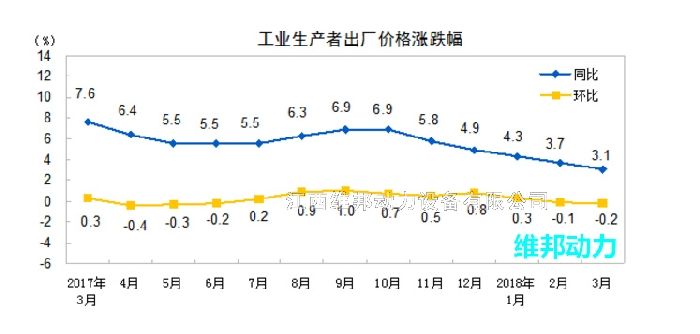2018年3月份全國生產(chǎn)者出廠價格同比上漲了3.1%,環(huán)比下降0.2%,工業(yè)生產(chǎn)者購進(jìn)價格同比上漲4.4%。